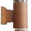 Artefacto de iluminación elaborado con aluminio y vidrio. Tiene 23 cm de altura y 8 cm de diámetro. Utiliza dos lámparas GU10.