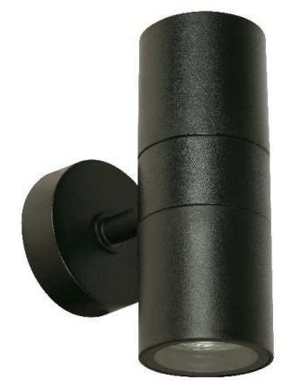 Artefacto de iluminación creado en fundición y vidrio. Mide 33 cm de altura y 10 cm de diámetro. Funciona con lámpara GU10.
