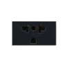 Toma de 2 polos más tierra Reggio color negro, ideal para puestos de trabajo, oficinas o espacios donde se utilizan equipos electrónicos. Ofrece máxima seguridad eléctrica y una estética moderna que combina con cualquier instalación.