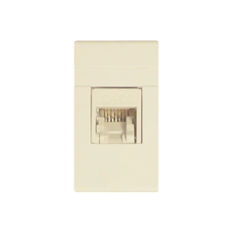 Esta toma RJ-45 categoría 6 en color marfil ofrece una conexión de datos más robusta, perfecta para ambientes que necesitan estabilidad y buena velocidad de red. Su color marfil mantiene una estética cálida y armónica.