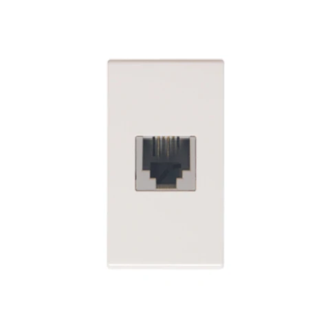 Esta toma telefónica RJ-11 en color blanco permite una instalación limpia y organizada de líneas telefónicas, ideal para hogares, oficinas o comercios. Su diseño discreto encaja fácilmente en cualquier ambiente.